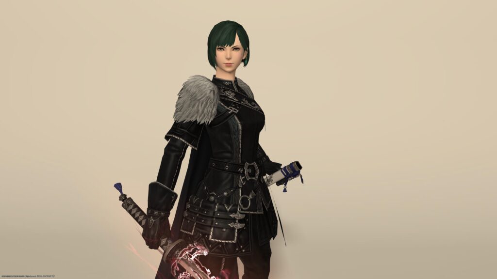 エオルゼア的には、この装備品はイシュガルドの貴族が着る服、という理解でいいのかしら。ふむふむ、確かにとっても強いこだわりを感じさせる装備品です。一通り、セットを楽しんだ後、わたしは別の装備品を合わせてみました。