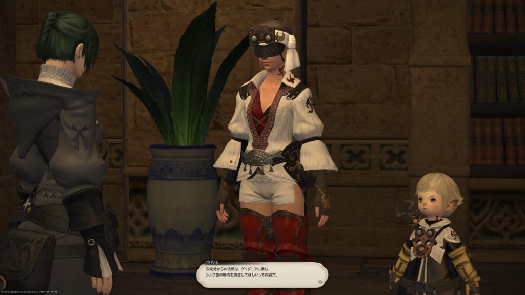 とりあえず、グリダニアでの調査は、イダとパパリモのコンビが同行してくれることになりました。でもあくまでも調査の主体は冒険者。彼らはアドバイザーという感じです。サンクレッドのように、冒険者と一緒にあれこれするというより、「こうしたらシルフ族の警戒は解けるんじゃないかな」と教えてくれる感じでしたね。
