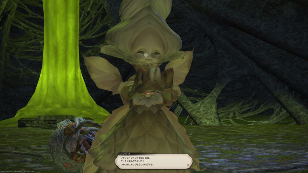 アシエン・ラハブレアがけしかけてきた魔物を倒したら、頭上の繭が動いてシルフ族が飛び出してきました。ええ、探し求めていたシルフ族の長ちゃまです。元気に騒いでいますけど、状況から考えるに、もしかしなくてもギリギリの状況だったんじゃないかしら、と思っていると、超える力が発動して長ちゃまの過去を見せてくれました。