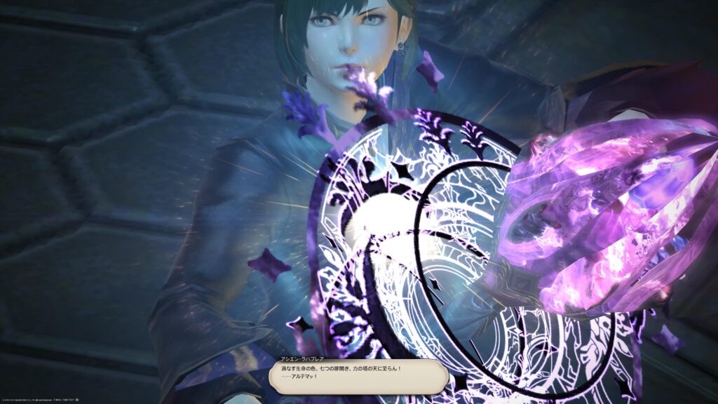 ガイウスがアルテマウェポンでも撃退できない冒険者に対し、恐れ慄いていると、アシエン・ラハブレアが登場。そして冒険者が優っている理由は、光の加護を受けているからだといい、アルテマウェポンに秘められている究極魔法「アルテマ」を発動させるのです。