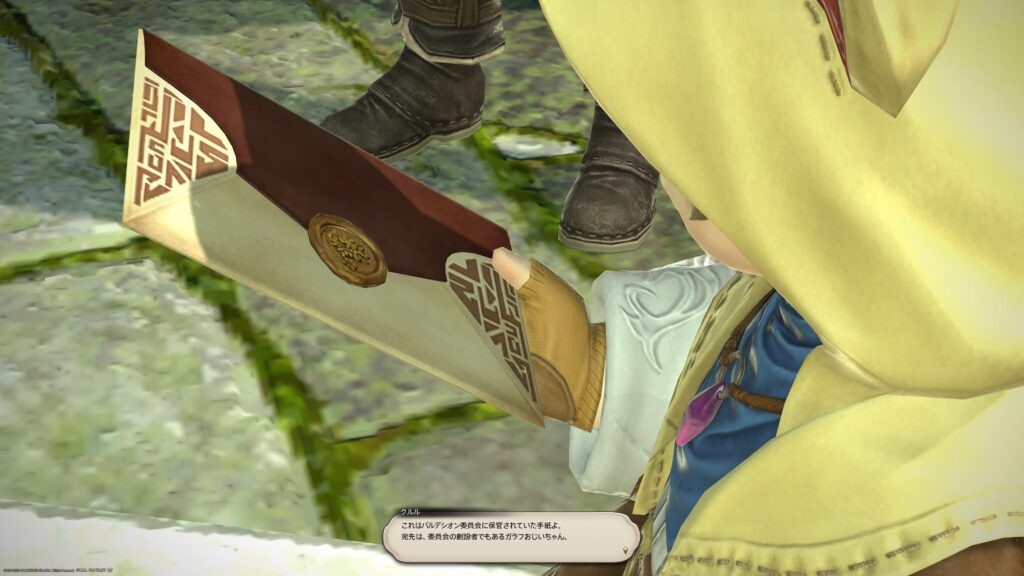 もっとも、クルルさんが差し出した手紙を見るなり、ウクラマトは「うん、これは連王が書いたもんじゃねえ」と言います。トラル公用語ではなくエオルゼアの言葉で書かれているし、国章が押された封蝋もついているけれど、トライヨラでは封蝋なんて使わないからそう判断したみたい。