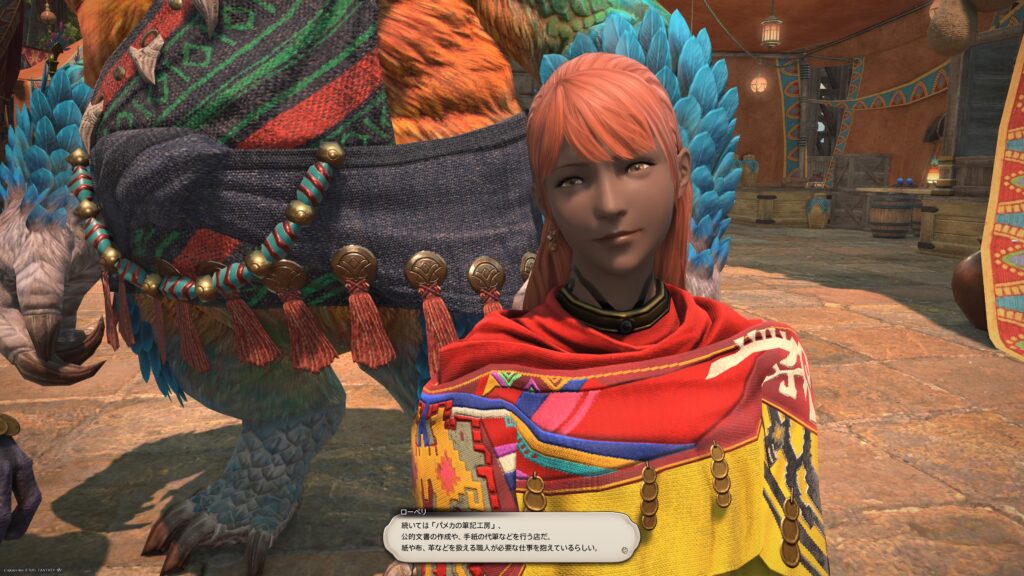 木工と裁縫、革細工のクラスで受注できるクエストは、このNPC、パメカさんから受注できます。