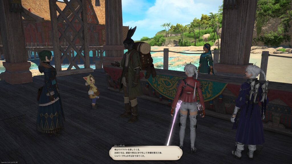 この二人にそれぞれの集落について話を聞く前に、アルフィノがリンクパールをラマチとエレンヴィルに渡して、ラマチに話しかけたら、クエストは終了します。