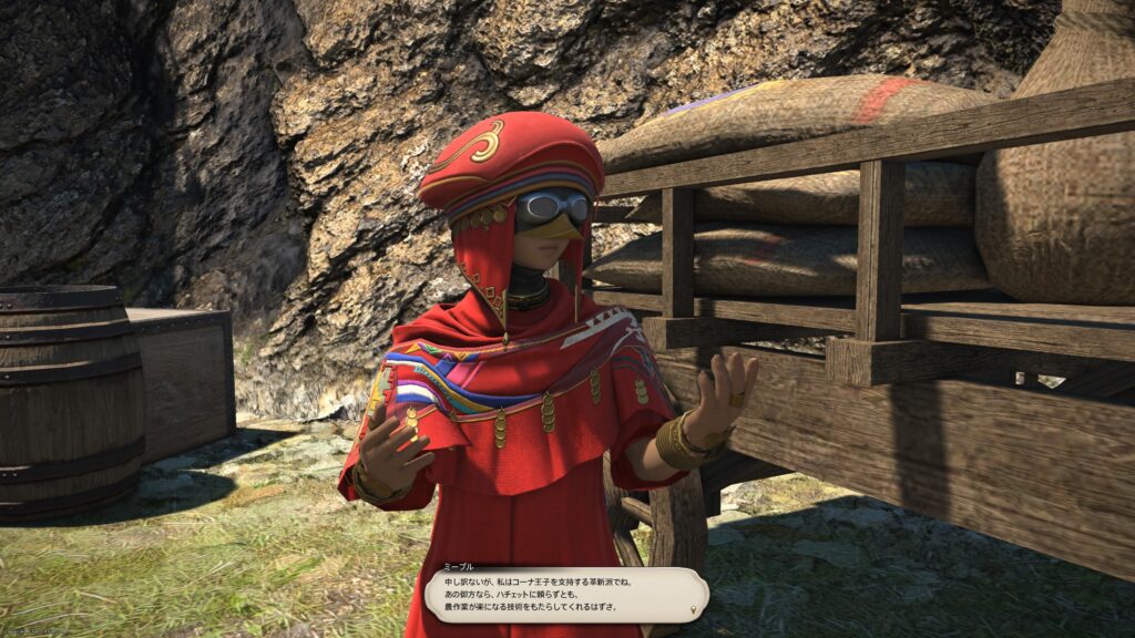 でもその取引を了承しちゃうようでは、「3年熟成の最高級メスカル」に辿り着けない。その考えでマーブルがいっぱいいっぱいになってると、ラマチが動きました。収穫を手伝う代わりに、もっと価値の高いものと取引させてくれ、と提案したんですね。その提案に、ミープルさんはのってくれました。