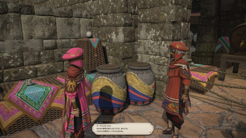 オルコ・パチャに戻ってきた一行は、メルカルを扱ってるゴーベリさんの元に向かいました。もっとも気合が入ってるマーブルは、事前にゴーベリさんに関する情報を集めます。