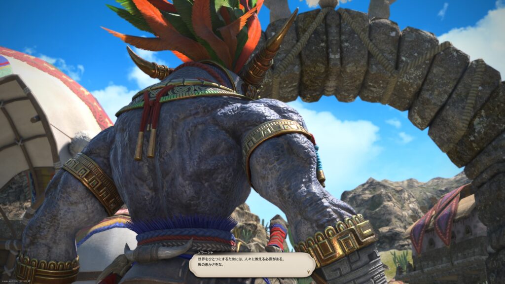 トライヨラがこの世界をひとつにするのです、とも言ってるんだけどさ、世界ってひとつにならんといけないものなのかなー。いろんな国が共存してちゃダメなの? その方が面白いと思うんだけどね、観光のし甲斐があって。それに外征するなら結局、ガレマール帝国と同じ手法で世界をひとつにすることになるんじゃないの? とも思ったり。