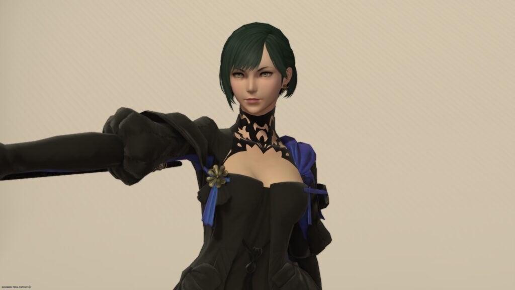 これでエオルゼア内のお正月準備はおしまいかなー。一応ね、晴れ着にも着替えてるんですよ。うん、ホルンクイーン・ブリオーを中心にしたミラプリですね。ヒーラーとは対照的に、黒と青でミラプリさせています。