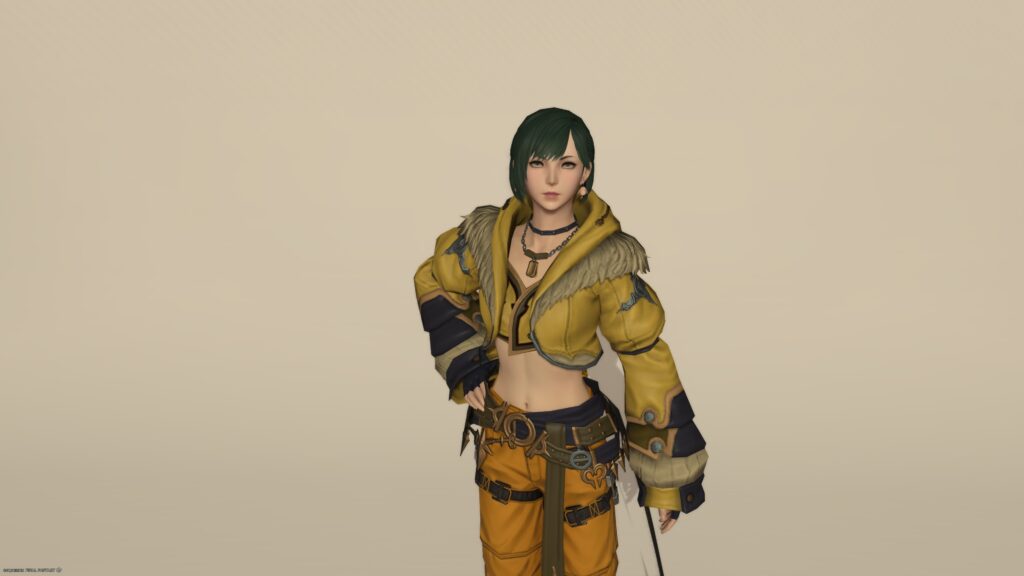7.2実装後から、リセの装備がかわいいと話題になっていたんですけれど、わたしは持ってなかったんですよね。でもね、気分を変えるためにもクラフター装備のミラプリを変えたくなって、ナタ姫君闘着をミラプリに使ったんです。