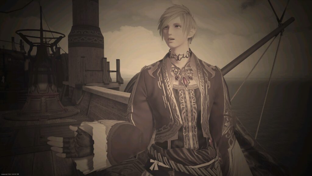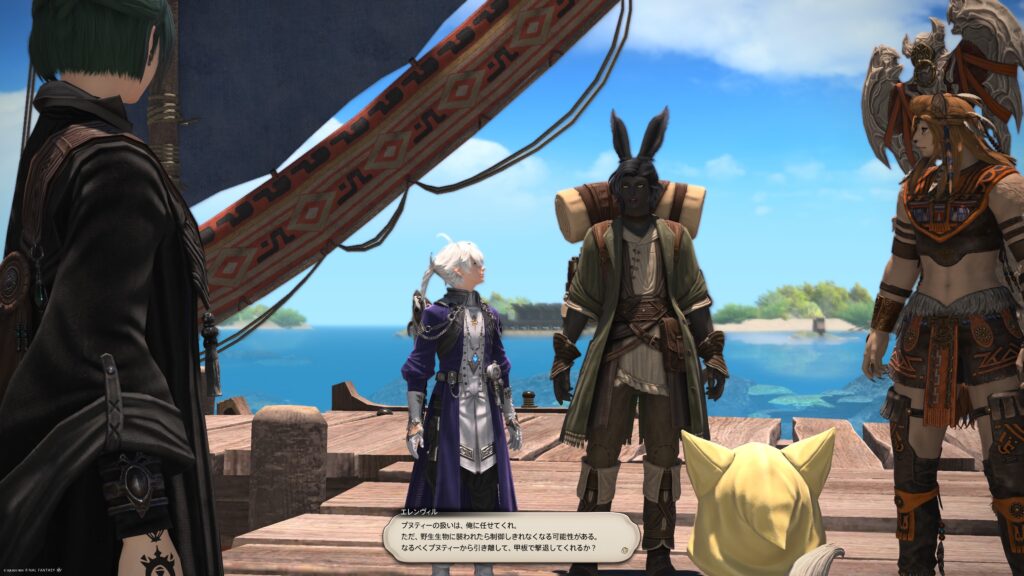 この申し出を受けて、クルルさんはピクトマンサーとしての力を試したいから甲板にまわりたいと希望し、赤魔道士のアリゼーがエレンヴィルの護衛に回ると申し出てくれます。