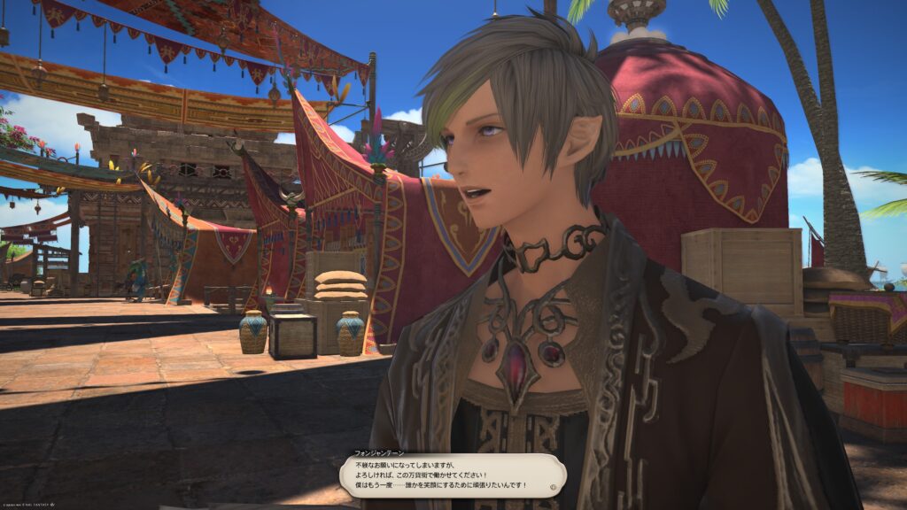 確かフォンジャンテーンという名前でしたね。他のNPCとは違って、名前が表示されてたから覚えてましたよー。この人と冒険者を並べて、記念撮影もした記憶があ〜る!