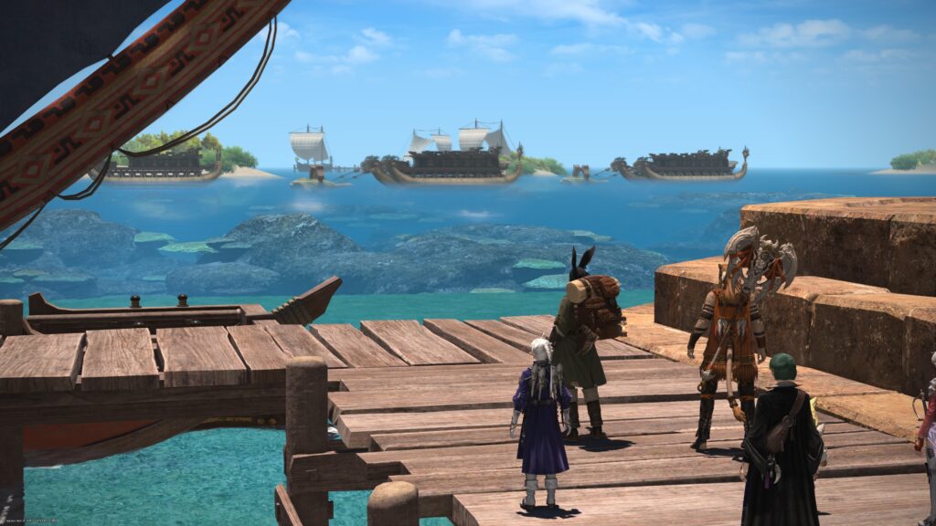 レガシー最初のダンジョンを攻略した後、冒険者たちは、バクージャジャによって壊された船を修理していたエレンヴィルとアリゼーと合流します。