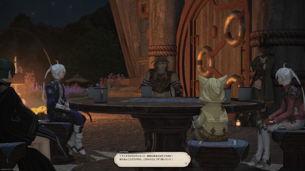 秘石を入手できたということは、試練の進み方が間違えてないようだ、とラマチたちは判断を下します。連王の他の選者たちも、トライヨラ叙事詩の舞台で待っていると考えてもいいだろうとアルフィノがいうのですね。