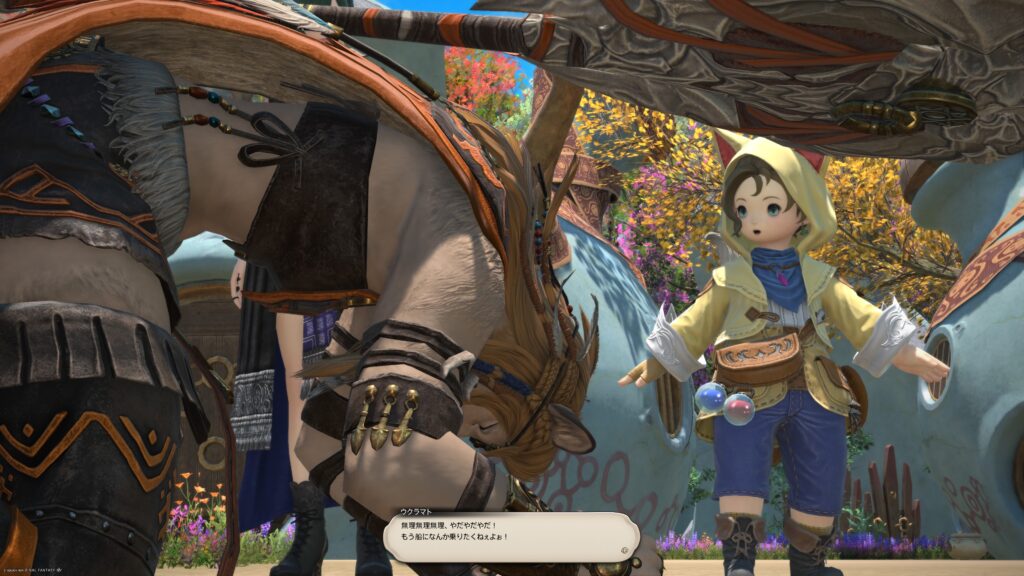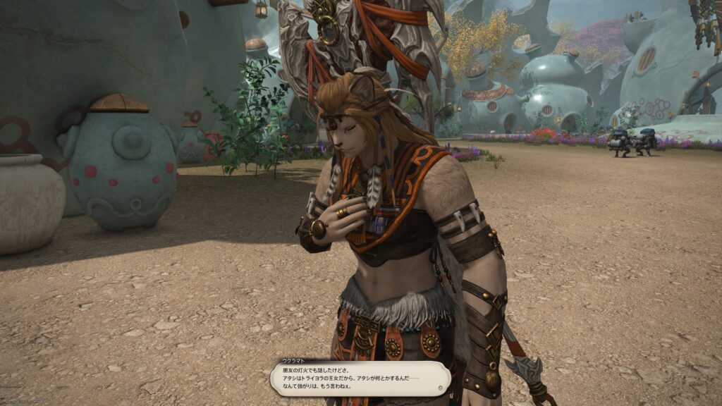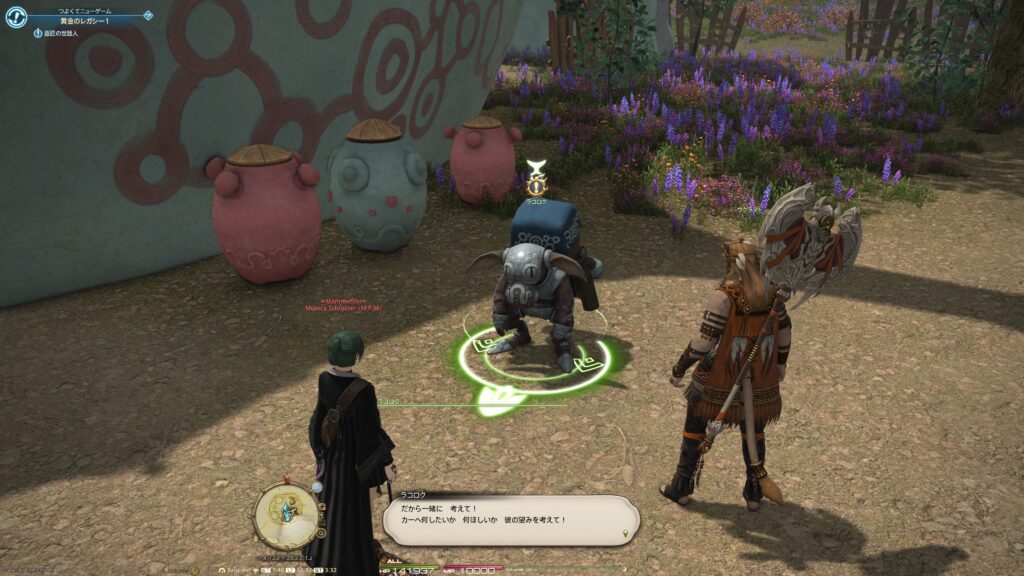 というわけで、レディロクの指示に従って冒険者はラマチと共に、ラコロクという世話人のお手伝いをすることになります。でね、そのラコロクのところに行く前に、ラマチは冒険者に言ってくれるのですよ。