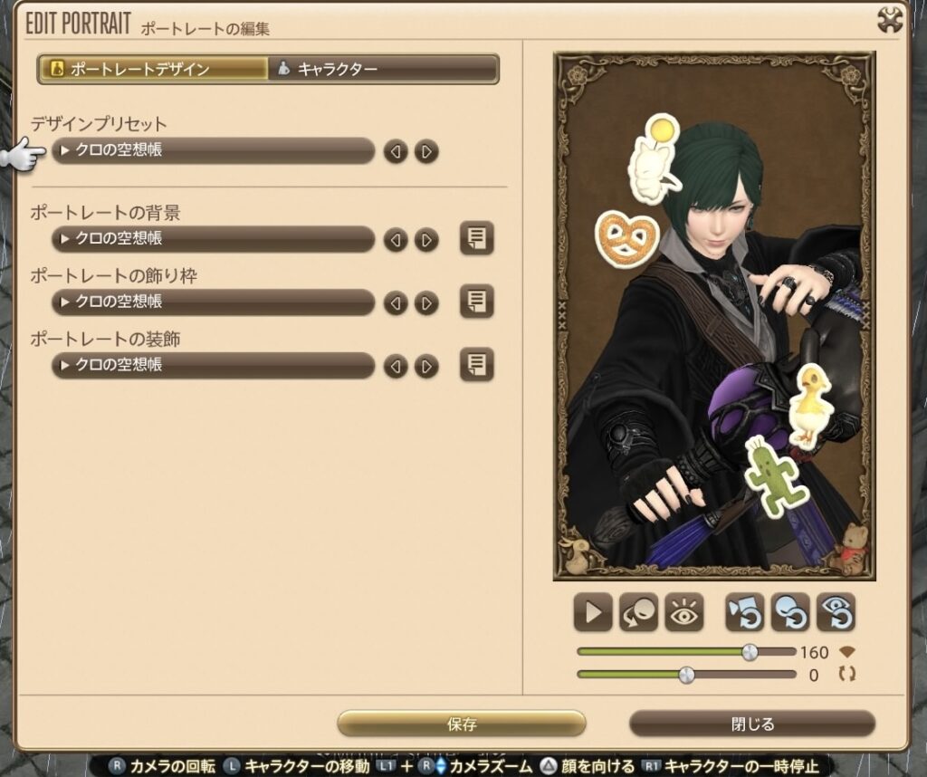 クロちゃんの空想帳デザインのポートレートです。四隅にお花とチョコボとクマさんがいる♪