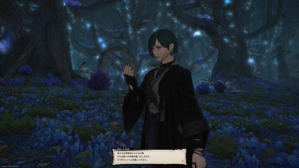 そしてその消えたあたりに手紙が残されていました。ヴァナ・ディールではなくエオルゼアの文字で書かれた手紙ですから、ピーンときますよね。