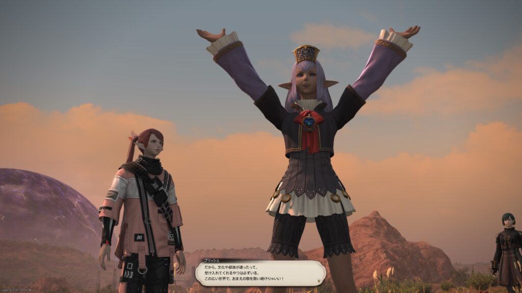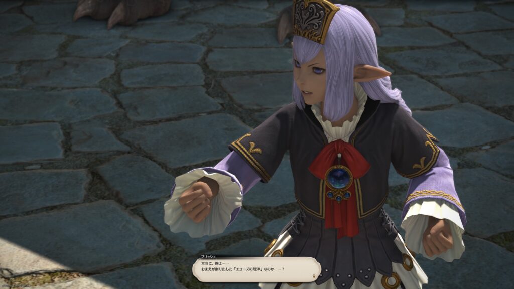 アルシャールが「ヴァナ・ディールに帰還できないと決まったわけではない。あるいは、サレージャならその方法を」と言いかけるのですが、プリッシュは静かに「もし帰れたってよ、そこには本物の俺がいるんだろ? 『この俺』の居場所じゃねぇんだよ」というから、この子は本当に賢い子だなあと感じました。