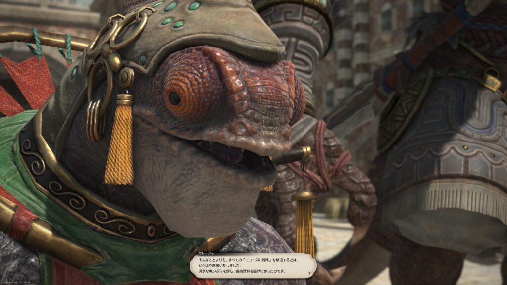 にしても、バクージャジャに対して、なんかなれなれしいなこの人。メインクエスト本編を思い出せばね、バクージャジャにとってサレージャはゾラージャ王子の腰巾着認識だと思うんですが、サレージャにとって違うのかしら、と思ってしまう。やっぱり双頭で、祝福の兄弟、だからなのかしらね。