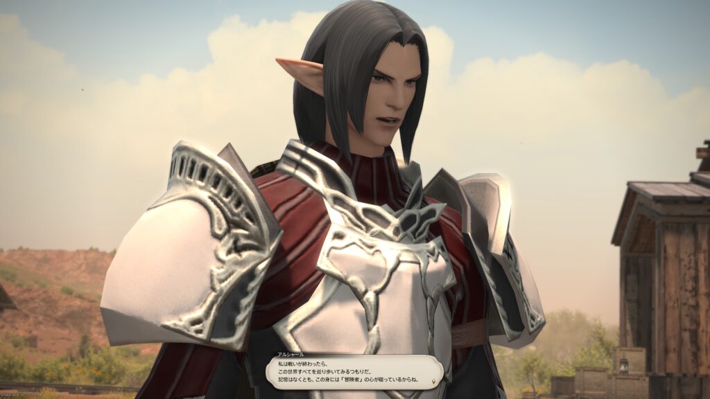 このとき、みんなに話しかけるとそれぞれの想いを話してくれます。特に、アルシャールが冒険者として初めて請け負った依頼は、サンドリア王国周辺のロンフォールの森でオーク族の斥候を倒すことだったと教えてくれるから、FF11のプレイヤーに近い人なのかなと思っちゃいました。まさか今流行りのゲーム世界に転生したプレイヤーだったりしないよねアルシャール。