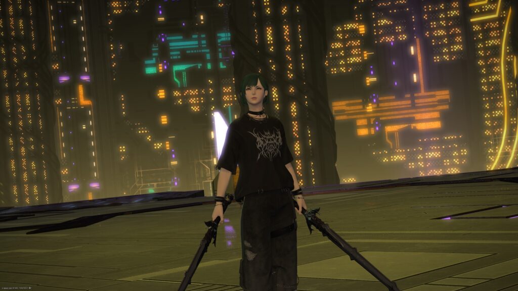 でもでも、背景が街の夜景みたく見えるから、夜景を練り歩いていたそこらの姉ちゃんが、唐突に発生した戦闘に対処している感が出た一枚となりました。