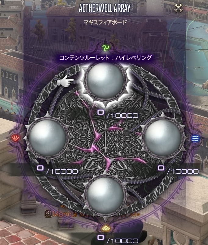 これらのアイテムが集まったあと、新たに製作してもらった魔道球にエーテルを蓄積していきます。具体的には、四つの魔道球に対応したルーレットによって貯まっていくようです。