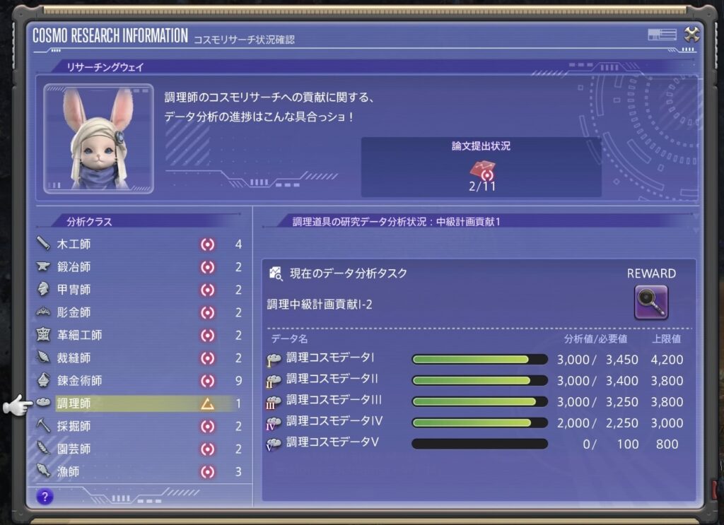 調理師のコスモツールを少し強化できました〜!
