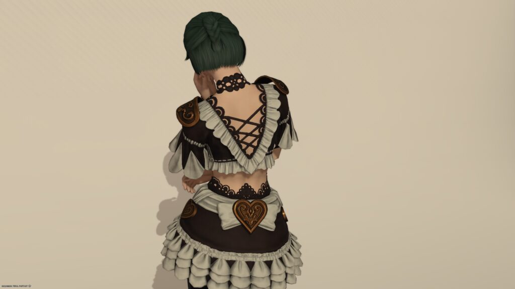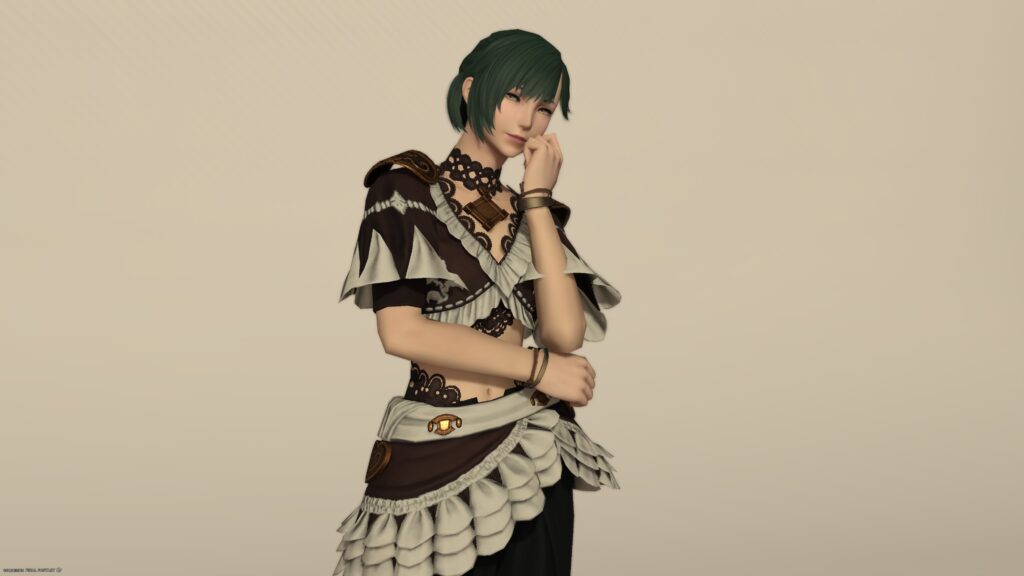 武器が華やかだからね、装備は白黒にしたほうが映えると考えたんです。へへへ、休日の踊り子みたいなミラプリになってくれて、とてもとても嬉しい。
