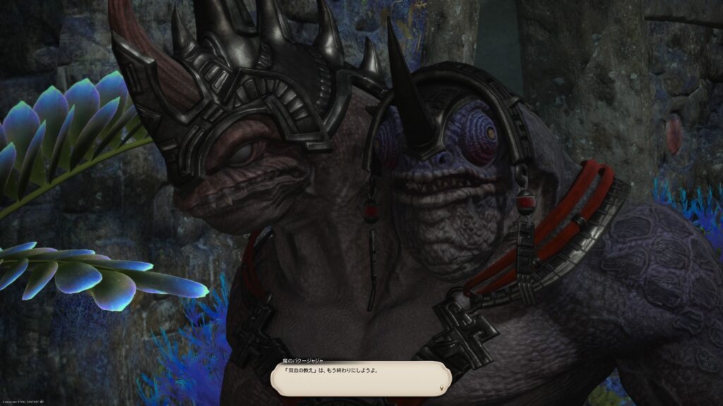 わたしね! このクエストバトルが大好きなんですよーっ! だってさ、本編ではやり取りすることがない理のグルージャジャも、この時には起きて、動いて、対応してくれるんだもの。理のグルージャジャも大好きなんですもん。もちろん武のグルージャジャとのやり取りも最高に楽しい。この二人のやりとりを聞けて、わたしは本当に嬉しかったんですよねえ。戦闘の難度はちょうど良かったです。や、少し前にグルージャジャと戦闘したからギミックもある程度わかっていたしね。楽しい戦闘でした。