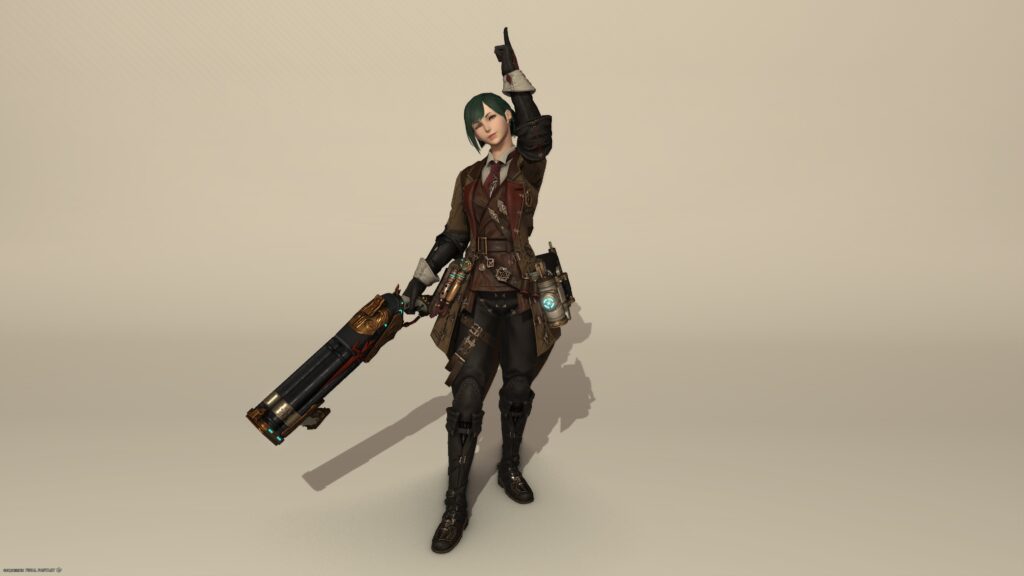 ちなみに、この装備でパッチ7.3のメインクエストの某場面も見たんですが、すごかったです。ええ、ジョブによって演出が変わる、あの場面です。わたしはやっぱりヴァイパーの演出がいちばん好きなのですが、機工士の演出もなかなか好きだと感じましたねえ。次元大介みたいにガガガと銃弾を撃ちまくるのかなと思ったから、意外ではありましたけど。