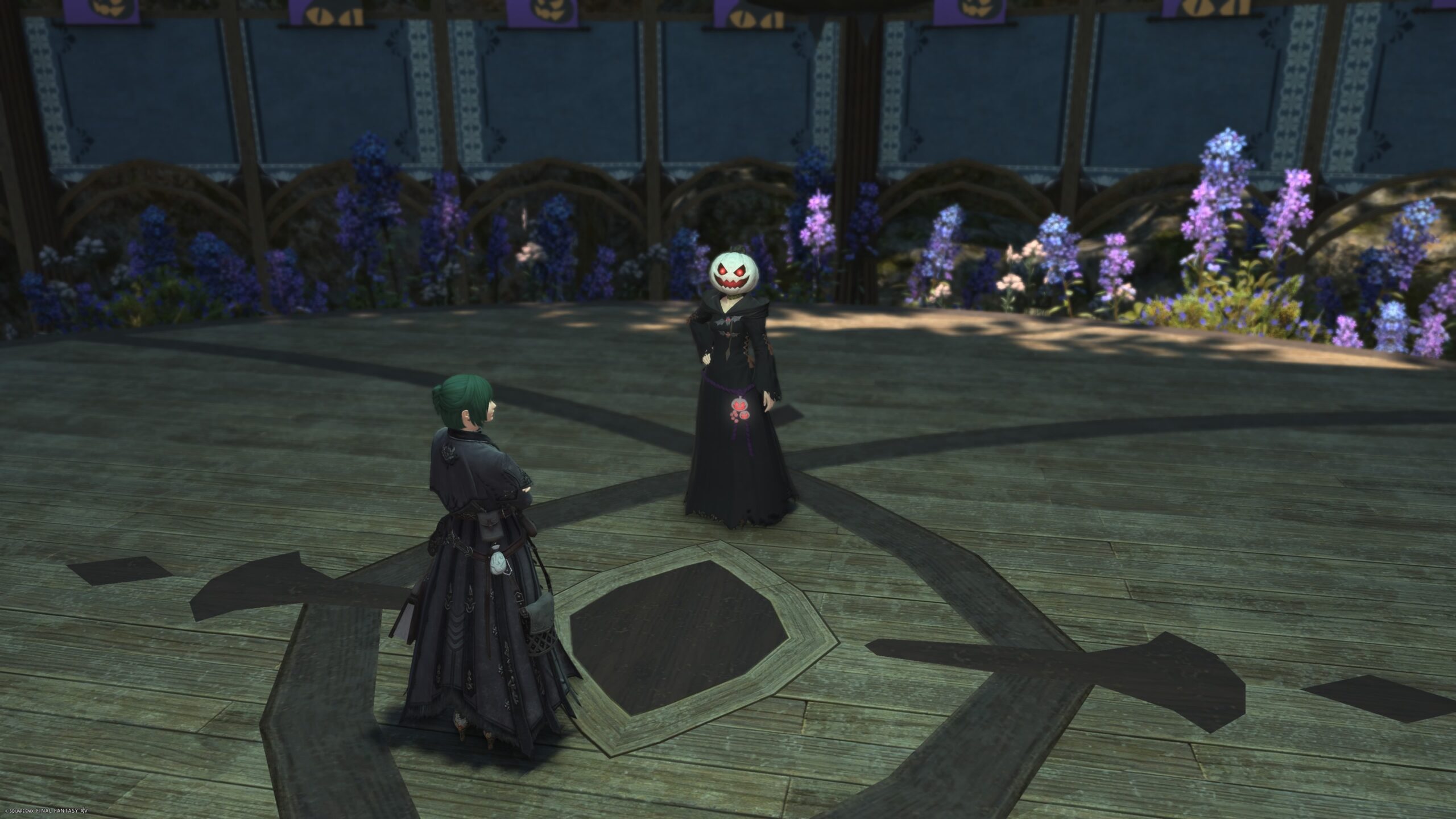 でね、意外に義理堅いダンチョーさんはパンプキンヘッドの女性にお礼をいいたいとおっしゃるから、グリダニアの野外音楽堂まで一緒に来たんですけど。
