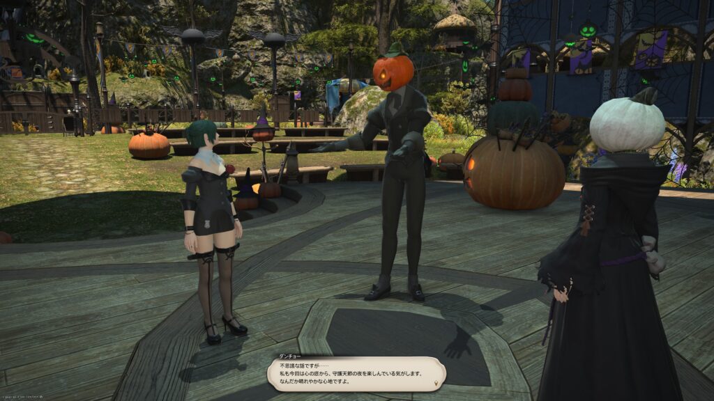 でね、パンプキンヘッドの女性は、冒険者に様子を見に行ってほしいと依頼してくるのですよ。そうして、仮装パーティーが行われている廃屋敷に冒険者が向かうのですが。