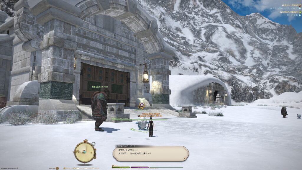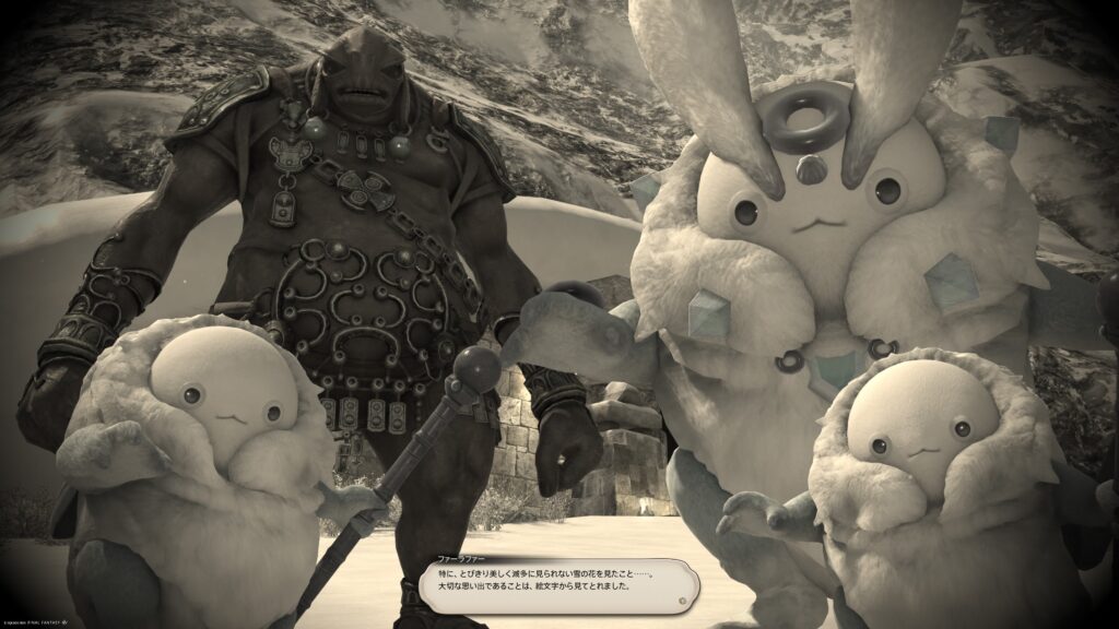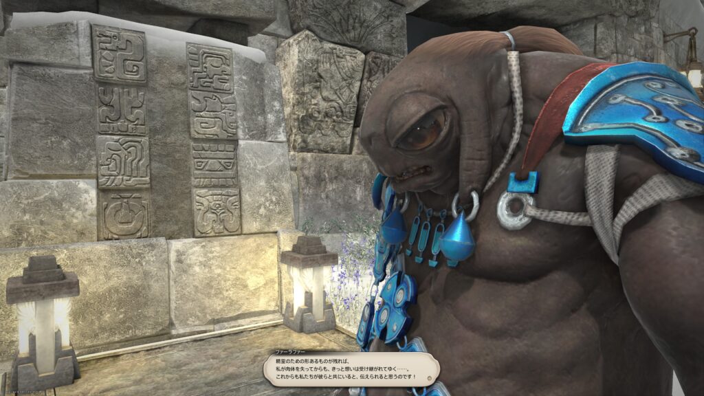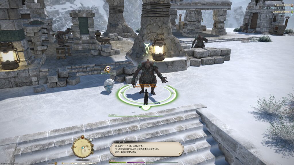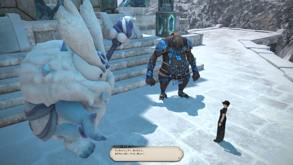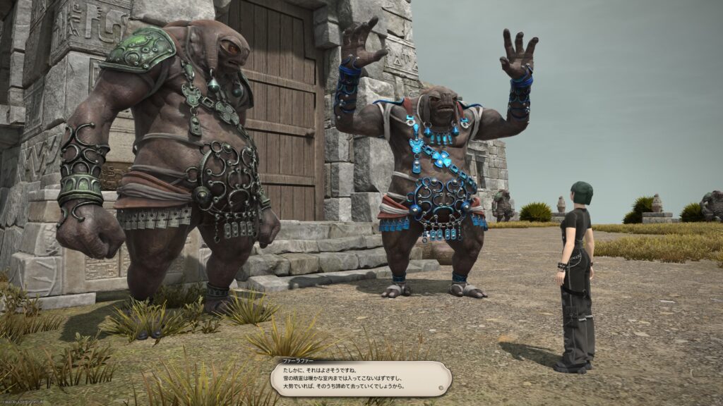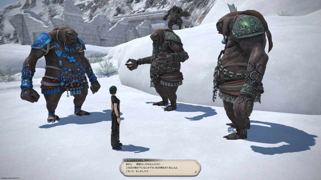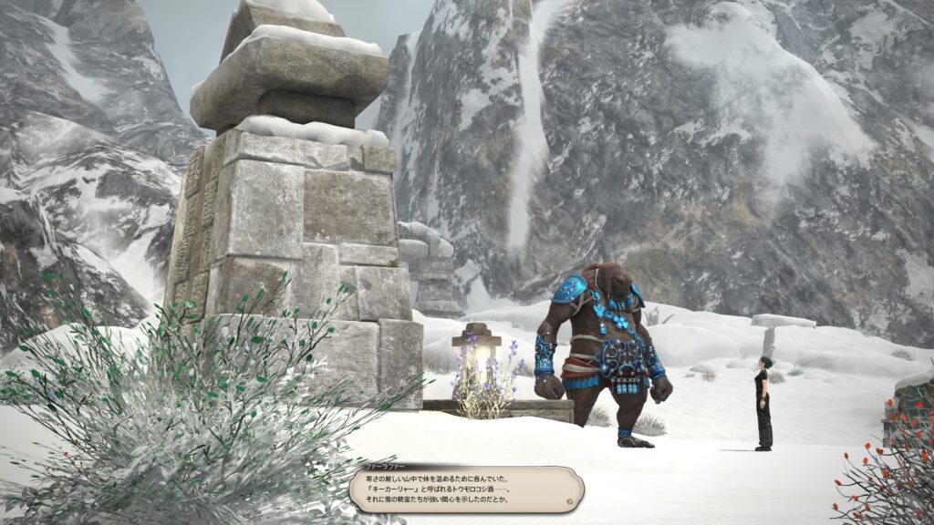 それを説明するために冒険者はファーラファーさんと一緒に、キーゾーホーさんの元に向かいます。キーゾーホーさんはなんとか雪の儀式の意義を理解してくれたんですが、それでも足がすくんでしまうそう。