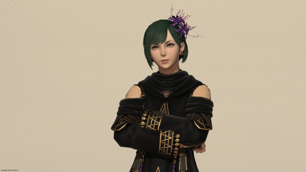胴装備と武器の差し色が、メタリックパープルだったんですよね。だからこの色を採用しました。初めはカララント:シャインブラスがいいかなあと思ったんですけど、実際に染色したらメタリックパープルの方がしっくりきた!