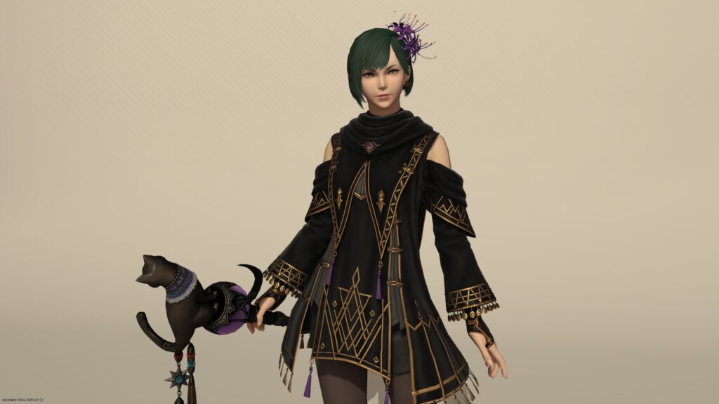 そう、ミストウェイク・キャスターハーフローブを入手したから、使いたくなったんですよねーっ! もっとも頭装備など、まだ入手できてない部分があるから、こんな感じにミラプリしました。