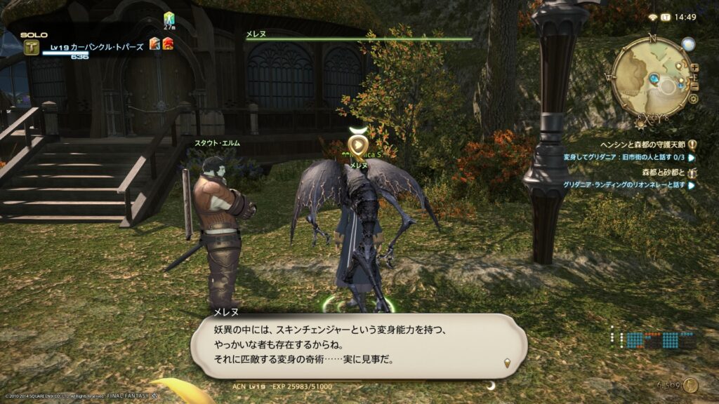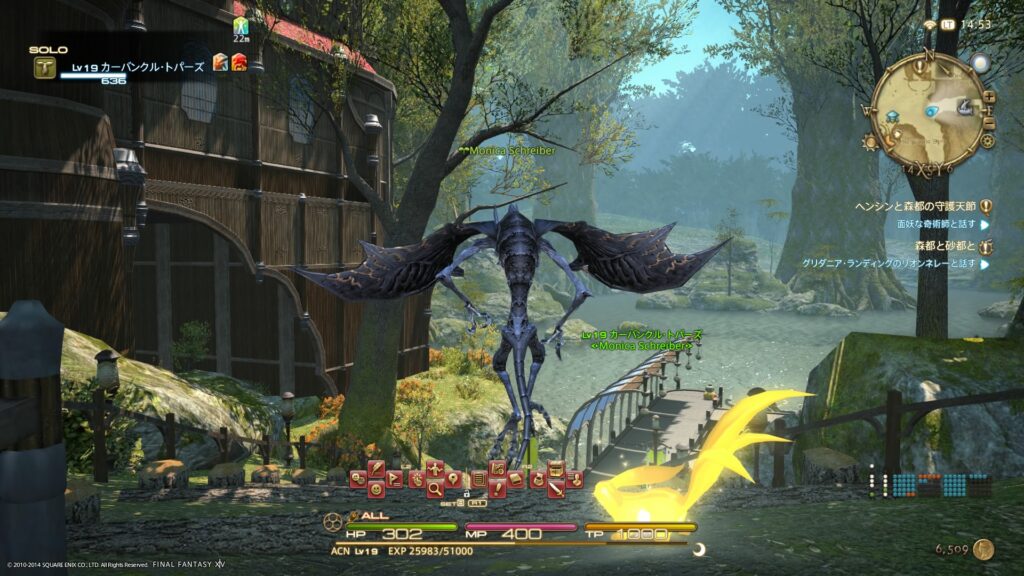 ちなみに、このときのLvは19、進めていたメインクエストは「森都と砂都と」ですね。攻略本によると、このメインクエストの想定Lvは15みたいですけど、わたしはメインクエストを進めるのをちょっと避けて、他のクエストを受注していってたのですよ。だから思ったより育っていたのです。
