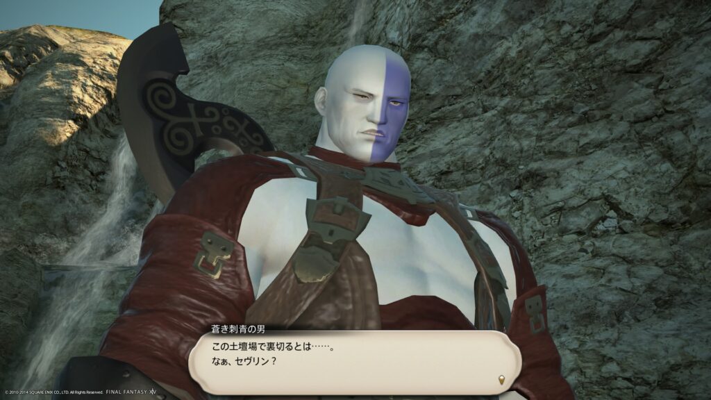 そりゃ青い刺青といわれたような気もするけど。顔にあると聞いた気もするけれど。でも率直に言うとね、これは刺青じゃなくてペイントじゃありません? さらに言っていいなら言うけど、すでに肌が薄青いのに、さらに刺青してどうしたかったんだろう、とも考えました。まあ、そのあたりは個人の趣味と言われたら、その通りなんですけど。