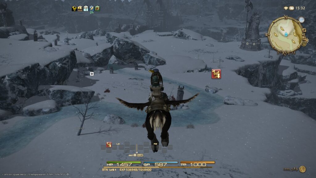 ちなみに、さいしょの写真は、システム面などを非表示にして撮影した写真です。本来は、こういう画面なのね。エオルゼアのチョコボポーターを利用した時と同じ画面です。