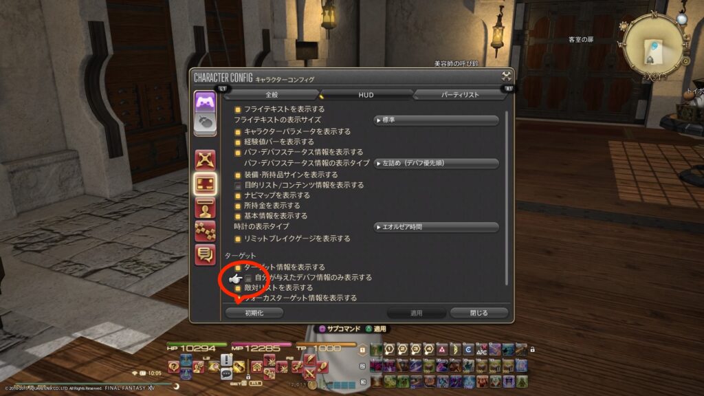 ええ、わたしはまさしく、こちらの項目にチェックを入れておりましたよ……。だから浄化法をかけてデバフを解除しようという意欲はあっても、敵が与えたデバフを見ることができなかったため、むざむざとNPCたちをトンベリ化させていたのでした。