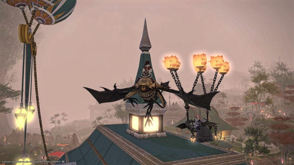 優雅なドレスを着た友達は、さらにゴブリン族のマウントを取り出して腰掛けててね、それがまるでカウチのように見えたものです。ふわふわ浮かぶマウントを、と考えてわたしも呼び出したけど、なんだろね、このちがい。優雅にくつろいでいる大人の女性のそばで、真似っこしている幼女の気分になりましたよ?