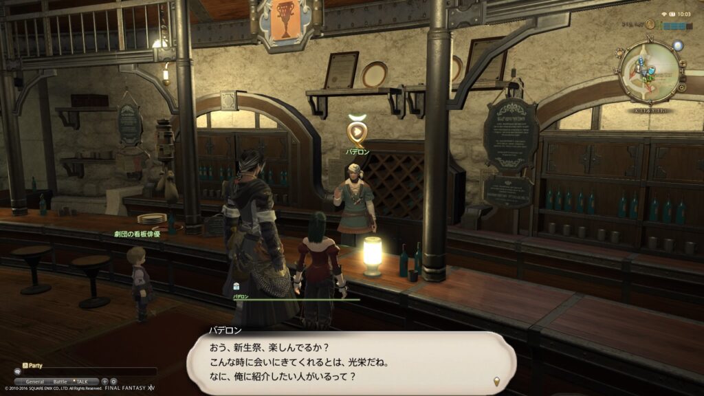そんな感じで、冒険者の中の人がぼんやりしている間にも、看板俳優さんは着実に必要な話を聞いて、迷いを吹っ切ることができたようです。しかし、どこの世界でも、悩みは変わらないのねえ。まさかこのファンタジー世界で、役作りに悩む俳優さんに出会うとは思わなかったけれど、リアルの世界だって遥か遠い昔から俳優さんはいたんだし、悩みって思ったほど多様ではないのかも。
