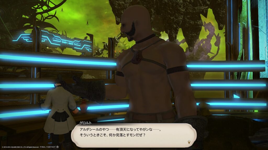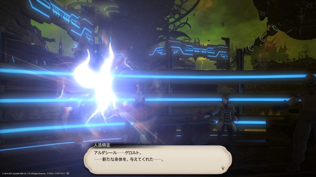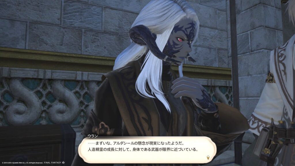 や、健気な人造精霊くんの主として失格かもしれませんが、なにせサブステータスを埋めるための期間が長すぎて、ほとんど忘れてるんですよ。合間に、ニーズを倒したり、にゃん先輩の素顔を見てしまったり、そもそもイシュガルドだって共和制になったり……。すっげー濃い期間だったから、そちらのほうがいろいろと、ね〜。それに、細かいところは忘れてても、大事なことも忘れてたけど、ほらほら、そうやって覚えてくれてる人がいるからいいじゃーん、と心の底でつぶやきながら、アルダシール少年のところに行きました。