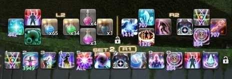 ・ブリザガ→静者の撃→猛者の撃→サンダラ→黒魔紋→エノキアン→ファイガ→ファイジャ×2→激成魔→ファイア→ファイジャ×2→ファイガ→コンバート→ファイジャ×2→ブリザガ→サンダラ→ブリザジャ
