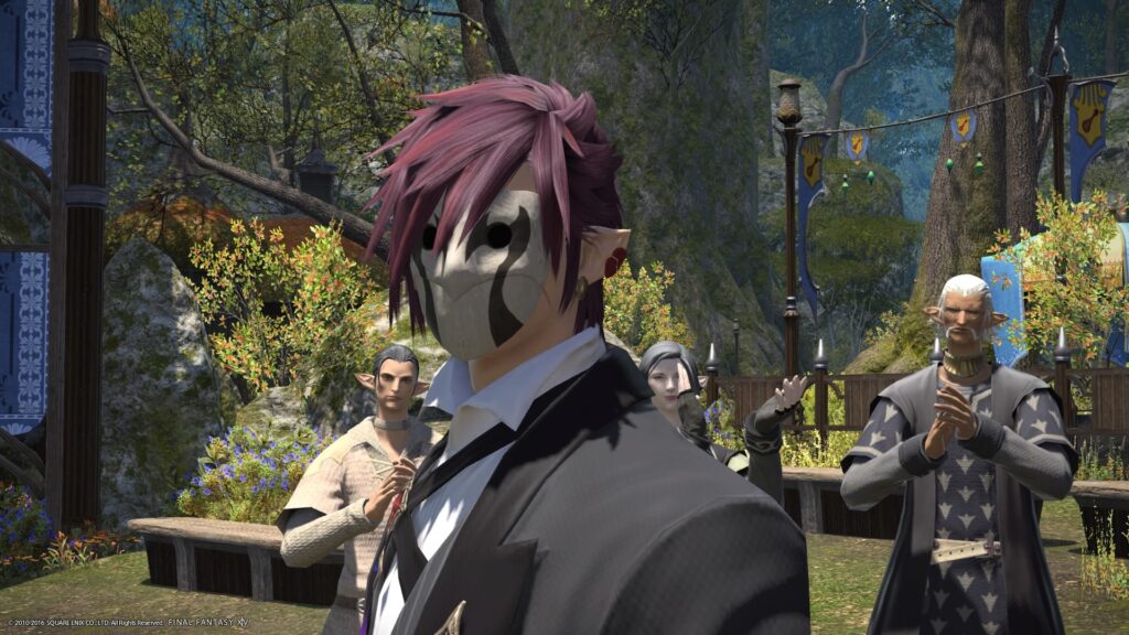 リムサだとフェザーブーツ、ウルダハだと義士の耳飾りになるところがさ、グリダニアでは仮面なの。