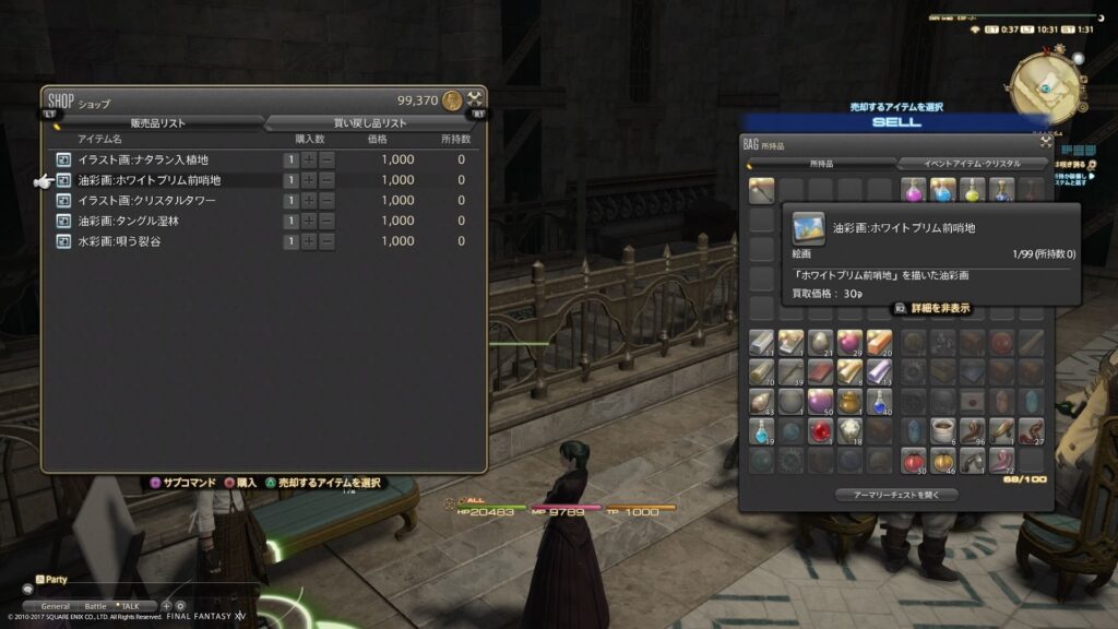 あと、額縁はマケボで購入しました。や、いまのわたしじゃ、作れないからね! いちばん小さいサイズ、G1は14000ギル前後、G2は44000ギル前後、だったかな。G3になると、ぐーんと値上がりして、20万を超えてたと思います。今日のマケボ市場では。