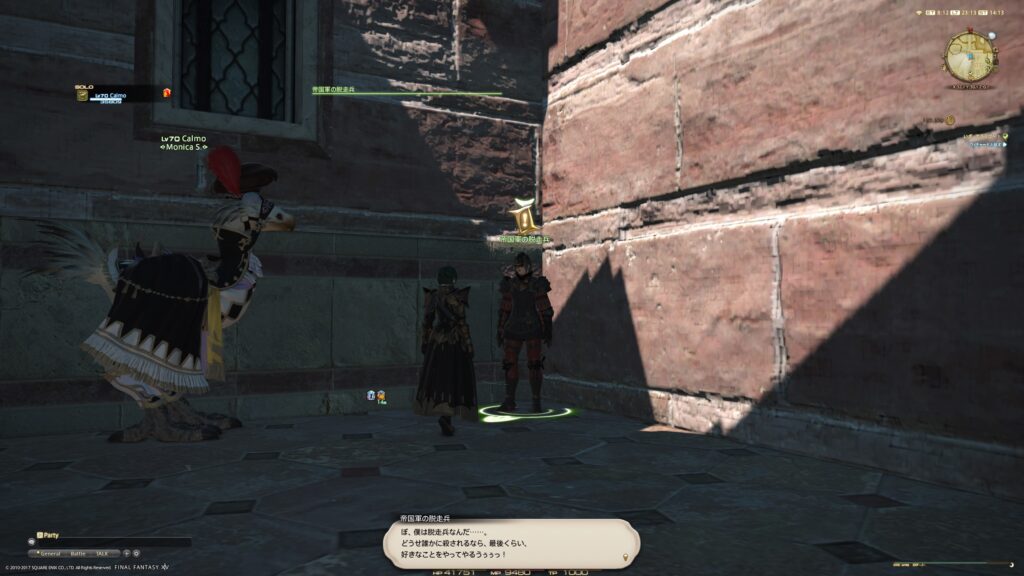 さて、LV70で受注できるサブクエストはいくつかあるのですけれど、そのひとつをこなしているとき、この青年を見つけました。ええと、ポルタ・プレトリアにいる青年です。この、カードゲームができるマークがついてたからね、気になって声をかけて見たのですよ。