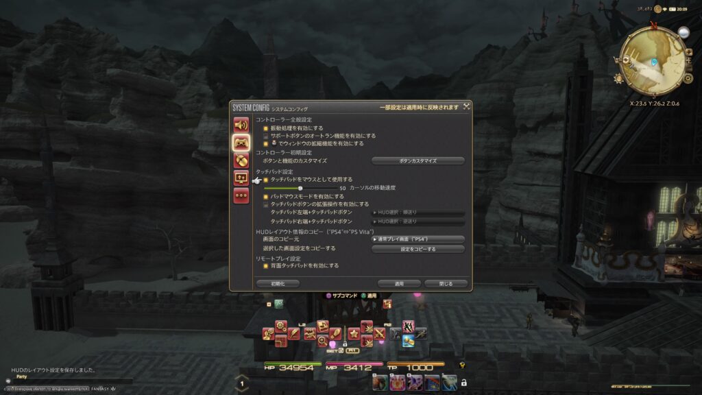 さらに、システムコンフィグを呼び出して、コントローラーのタッチパネルをマウスとして使えるようにしました。