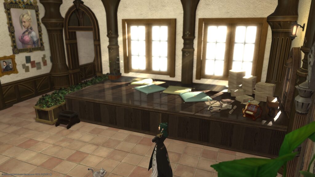 おおおお〜! と衝動買いしたくなりましたが、とりあえず先にお家を整えないと、と考えて、ようやく、着手したのですよ。とはいっても、まだまだ、一階だけです。グリダニアSのおうちの一階だけ、整えました。