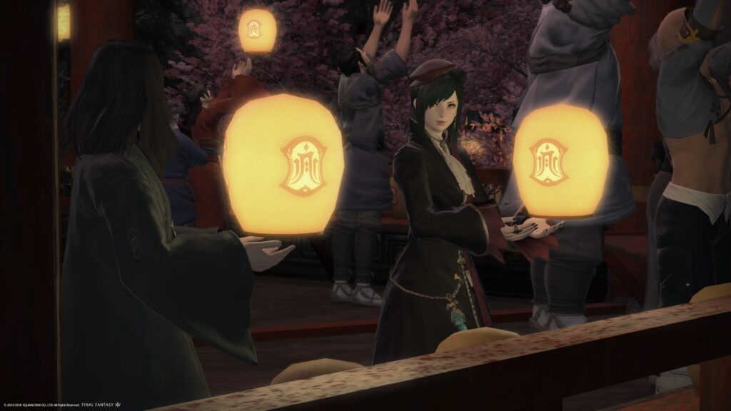 するとね、たくさんの冒険者さんたちがいらしてて、みなさん、ドマ町人地の物語を楽しみされてたのね〜っと思いました。自分がそうだったから! トレイラーでも見かけたこの場面、ようやく、この場面を見ることができましたねーっ! ここまでたどり着いた事実に、感無量です。
