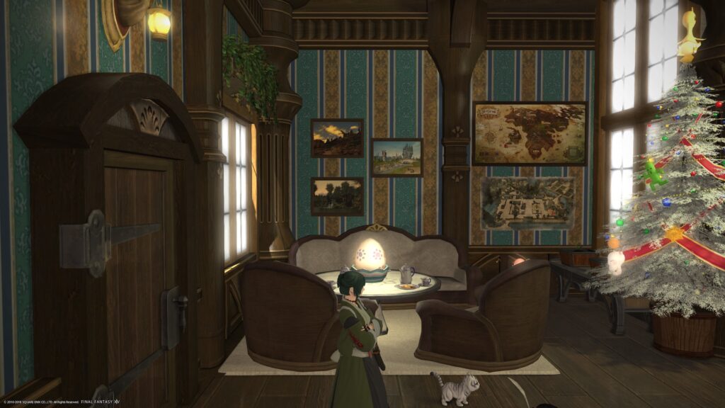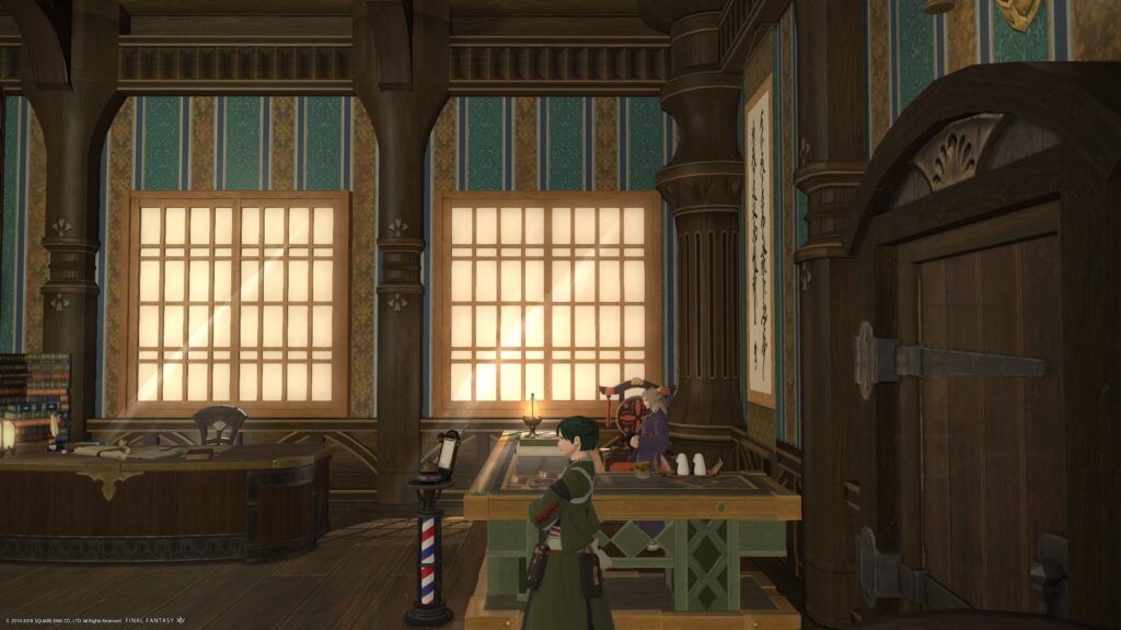 で、窓に合わせて、壁飾りも変わってきてますね。洋風と和風。もとい、三都市風とドマ風? あれ、このあたりの名前ってどんな感じになるのかしら。エオルゼア風とは言わない、よね? ドマもエオルゼアだもの。って、違うっけ? あれれ? ……世界設定本を読み直してこよ……。