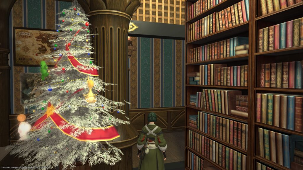 ちなみに、テーブルの上の書類は多分、いろんなダンジョンのギミックに関するメモだと思われます。パソコンならペタペタと付箋が貼ってあるところだけど〜。そういえば、パソコンの再現ハウジングも見かけたのですけれど、あれはどうなってるんだろう……? ハウジングの謎、まだまだ解明できてない謎が多いです。謎は(わたしにとって)難しければ難しいほど、たのしいものなのだ!(やせ我慢?)