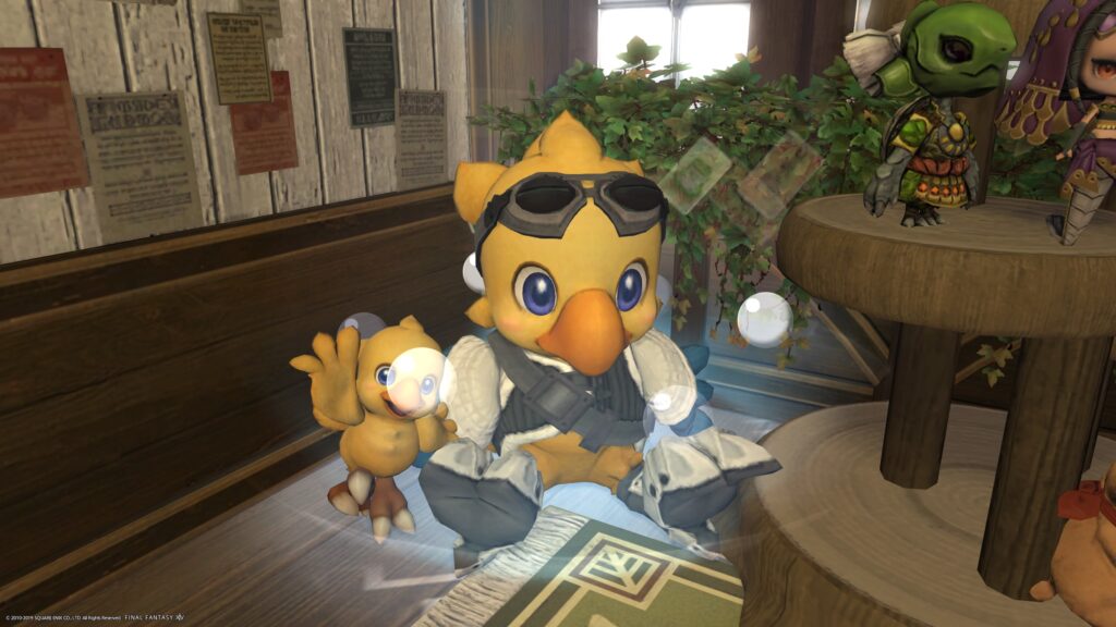 今週で武具投影も解放されたのですが、うーん、アドキラーさんの場合、あの仮面がインパクト大だから……おそろい(?)の胴装備を金色に染めたものをミラプリして、まるっと金色の豚にするしか思いつかないんですよね。今回からかな、カウンター向こうに並ぶようになった、お仲間さんたちに合わせた装備も考えたけれど……。むう。